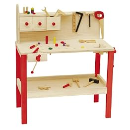 roba Werkbank, grosse Spielwerkbank aus Holz, Meister-Werkbank mit umfangreichem Werkzeug Set, grosser Arbeitsplatte…