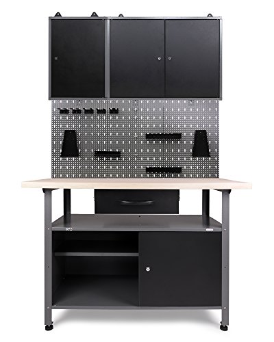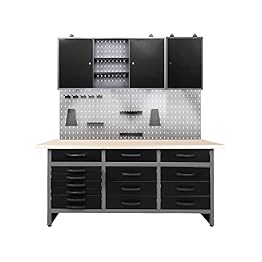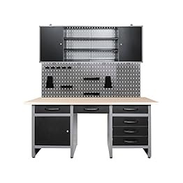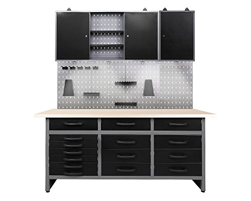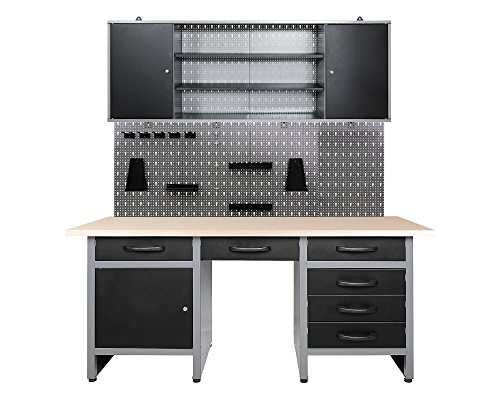 Ondis24 Werkstatteinrichtung 160cm, Werkstatt – Werkbank, Hängeschrank, Euro – Lochwand mit Haken