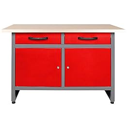 Ondis24 Montagewerkbank Werkstatteinrichtung Werkbank 120cm Werktisch rot mit 2 kugelgelagerten Schubladen & 2…